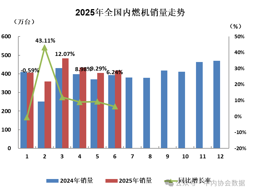 2025年6月,我国内燃机职业整机销量呈现出环比、同比双增加的杰出态势,上半年累计销量较上年同期增加超10%。在各项活泼宏观政策推进下,经济稳定增加,内需开释、外需多元,为内燃机商场注入生机。